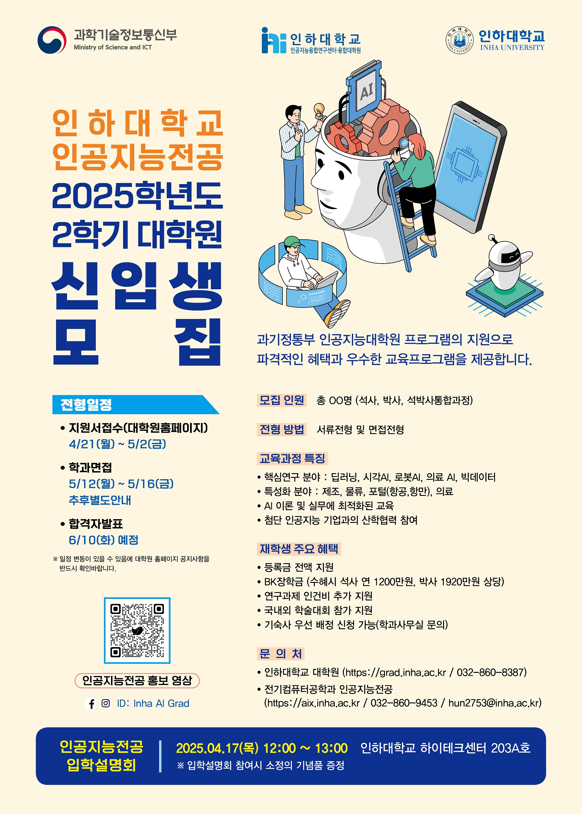 -  인공지능전공 SNS (Facebook, Instagram) ID : Inha AI Grad